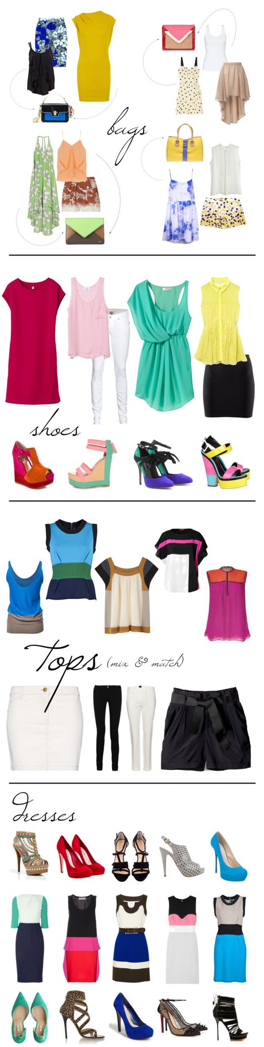 Perhaps you like the color blocking trend, but find you are intimidated by selecting separates?  A color-blocked bag or pair of shoes easily pairs with a monochromatic outfit.  One of the easiest color-blocked items to pull off is a top or blouse.  You can almost always add white or black pants for an instant outfit with maximum effect!  Try some of the combinations below…