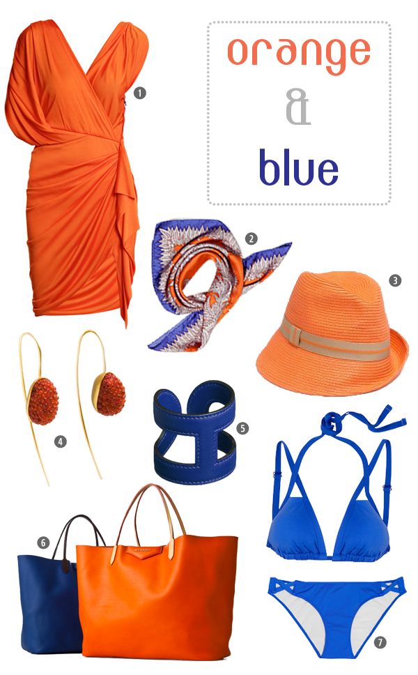 I love orange. I usually keep it simple, pairing it with simple metallic shoes and accessories, but have been wanting to branch out a bit. Taking inspiration from a bright blue and orange chandelier, I put together a few items in this striking color combination.