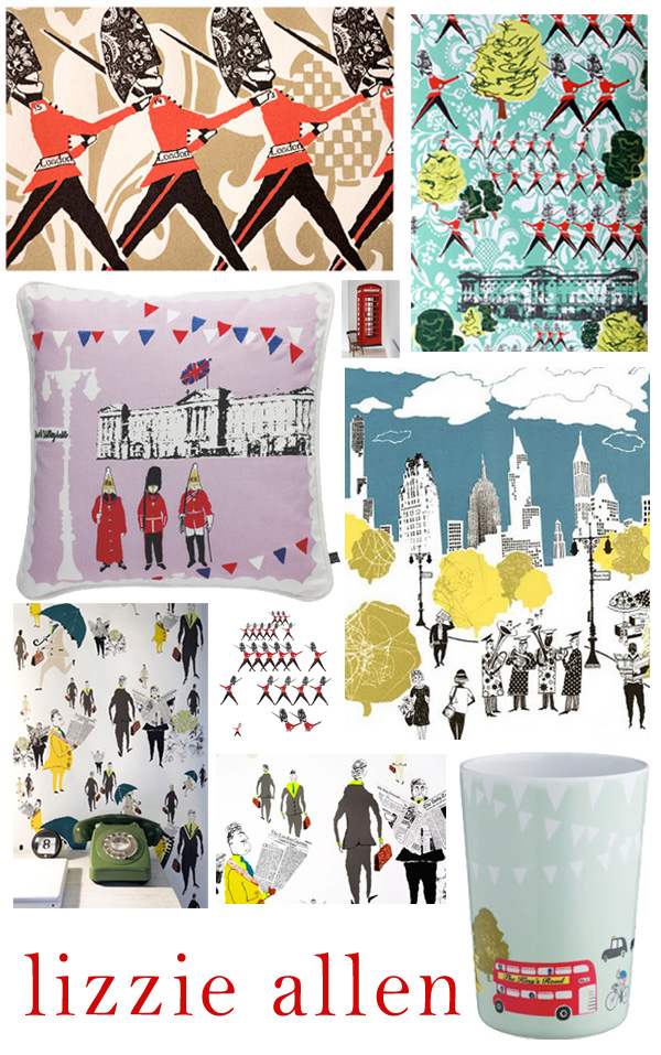London-based wallpaper designer Lizzie Allen finds inspiration in everyday life. Whimsical scenes depict the changing of the Palace Guard, the iconic British telephone box, city gents, and even a jazz band in Central Park! These hand screen printed papers would look terrific as a feature wall (I’d love them for a powder room!)